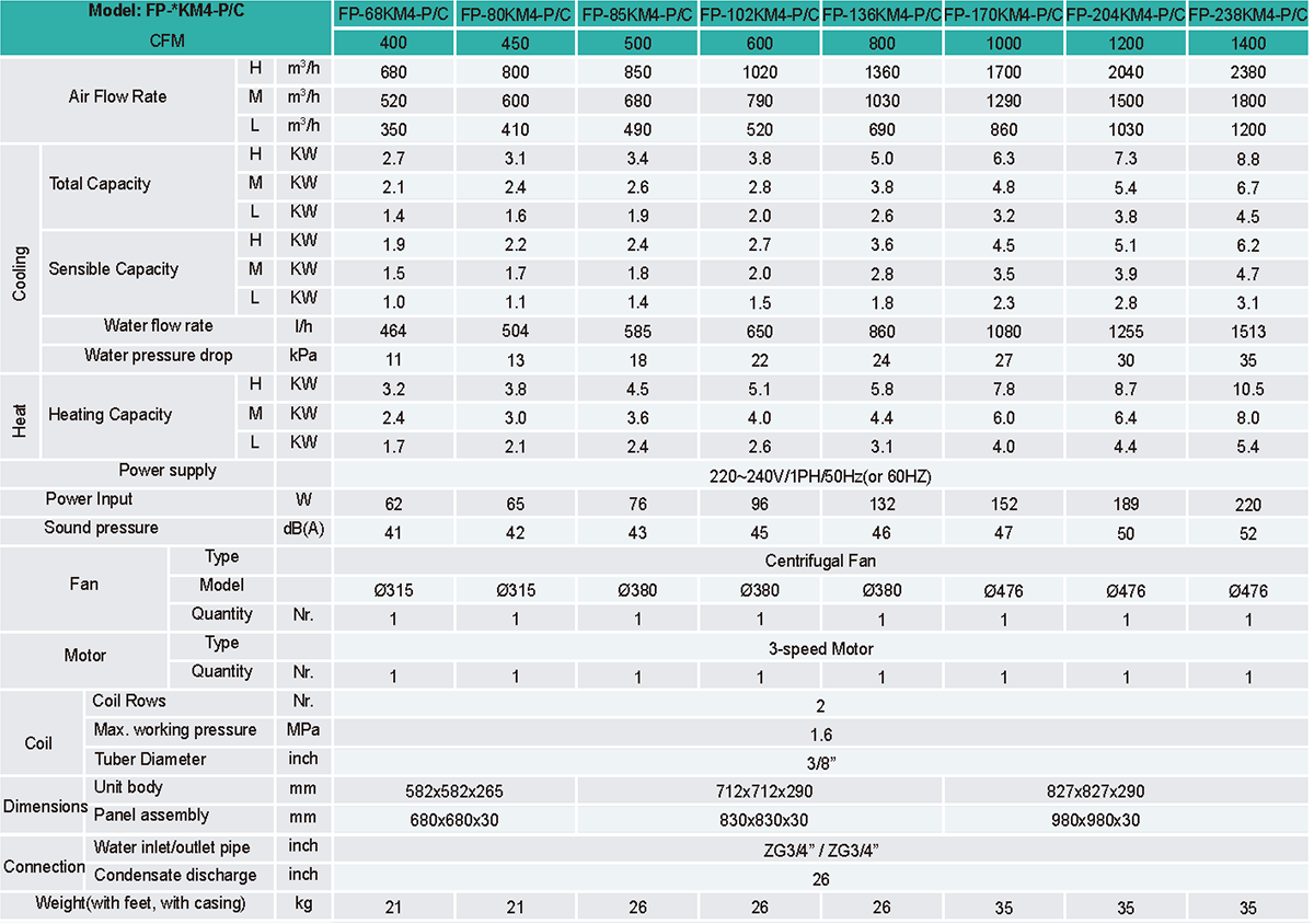 700mm head drain pump with no return valve is installed in the unit; an float switch inside as well to prevent from leaking. If the water raising to a certainly position, the float switch will act and alarm, then the unit will cut off the water valve or stop the fan motor.