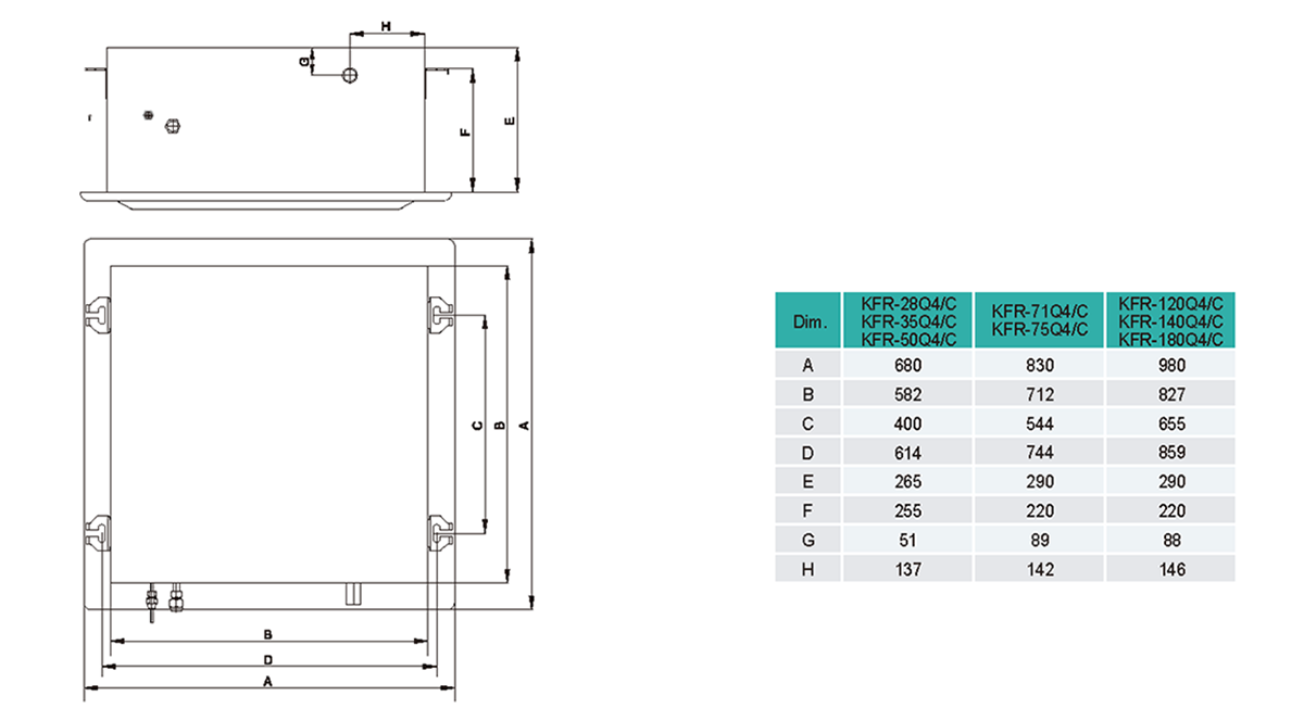 Heat Exchanger: Copper tube and hydrophilic AL fins, built-in or external electric expansion valve(optional)